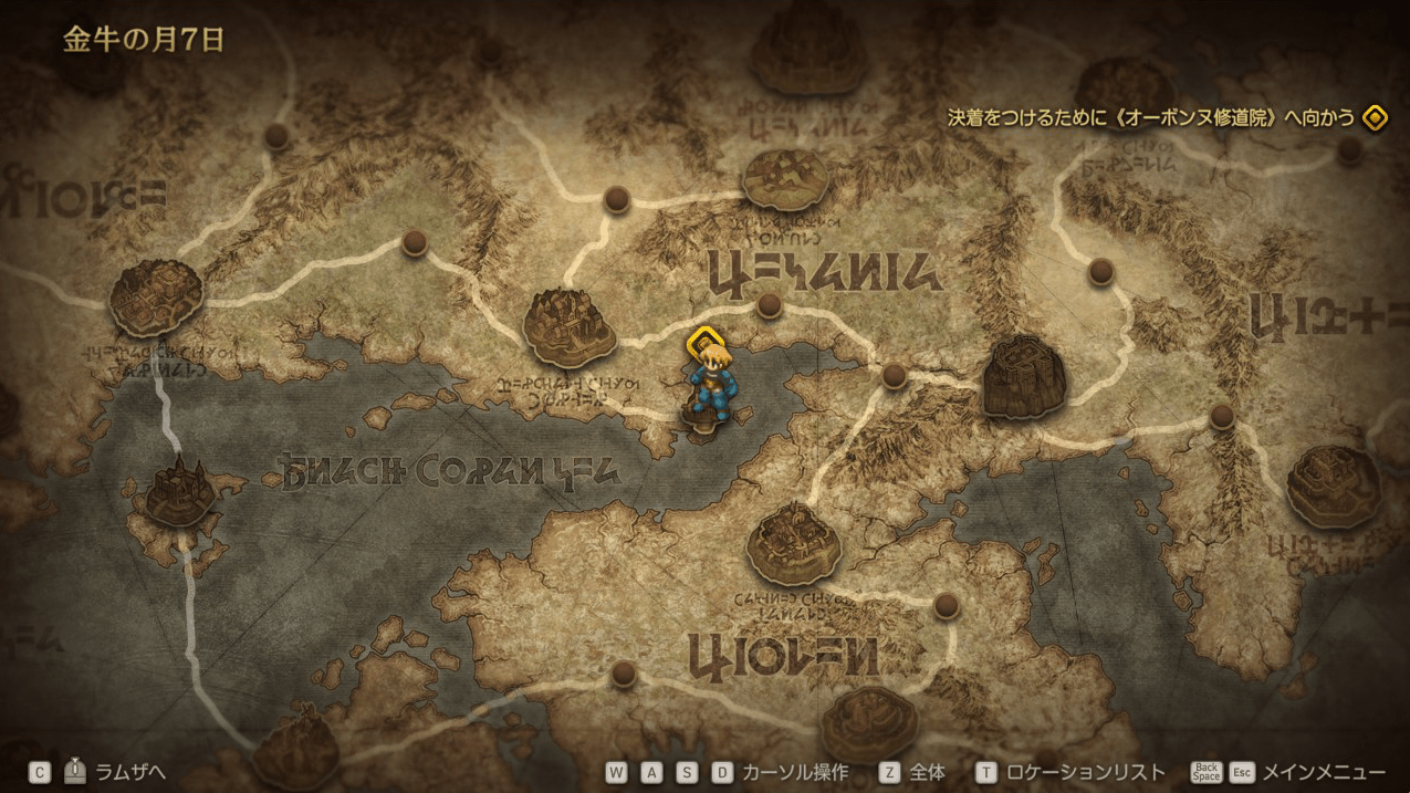 イヴァクロのワールドマップは旧作と違いメニューコマンドがありません。