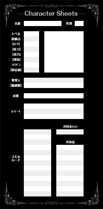 キャラクターシートの画像はこちら(クリックで画像表示)からご自由にお使いください。